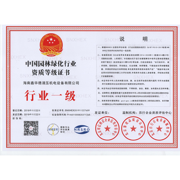 园林绿化资质证书(行业一级)